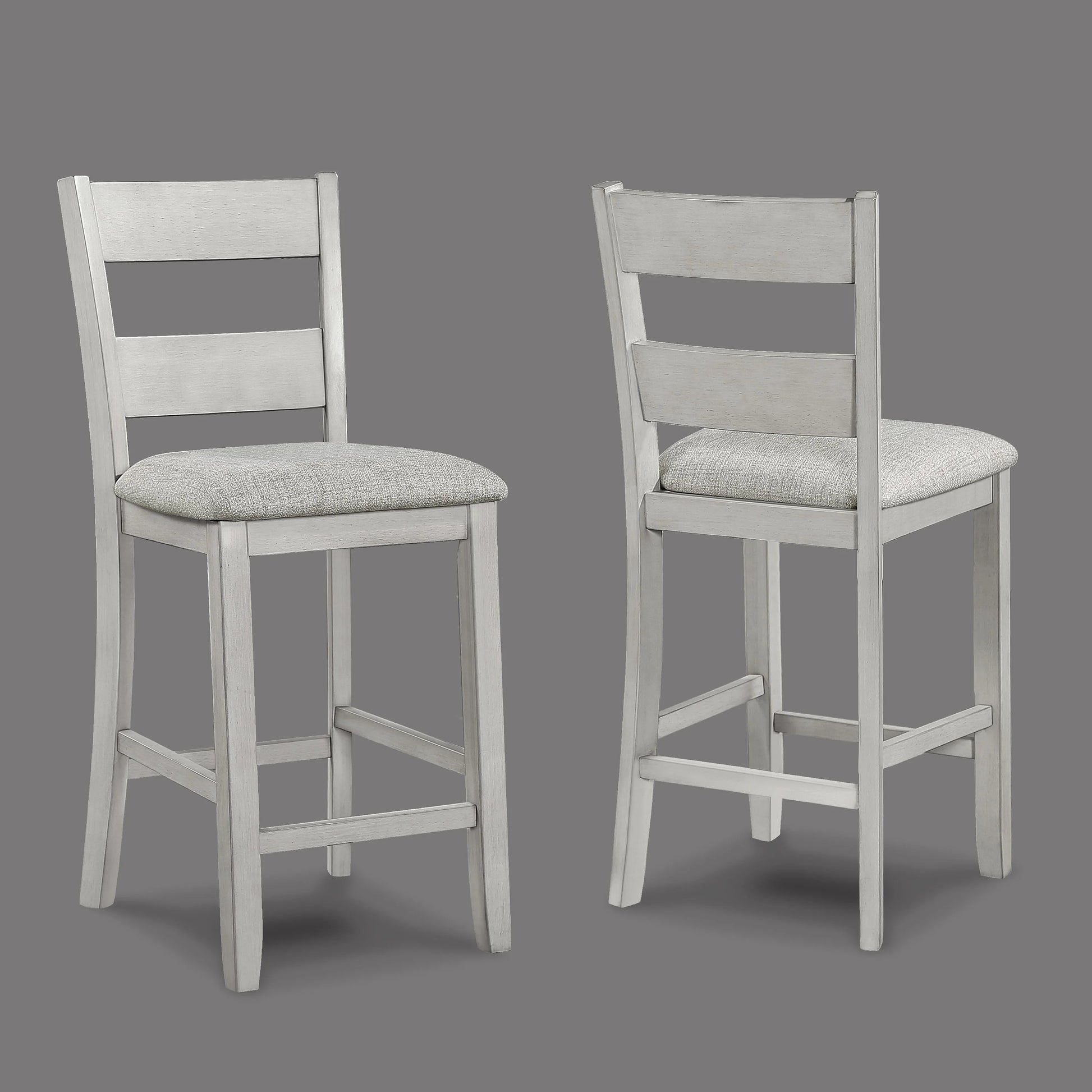 Modern and functional, this dining set features a drift wood finish with a wood-grain tabletop. Paired with matching high stools that have upholstered seats, this ensemble offers a clean, streamlined look suitable for any contemporary setting. Built for durability and designed for simplicity, it's an ideal choice for everyday dining.